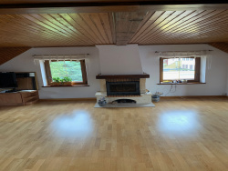 Obersteigen, dans un immeuble en bon état, 2/3P d'environ 89 m2 avec combles non aménagés d'environ 90 m2 au sol. Il comprend une entrée avec placard, un dégagement, un salon/séjour avec cheminée, une chambre avec placard, une cuisine équipée et meublée, une salle de bain équipée avec wc Une cave complète ce bien. Chauffage collectif au fioul