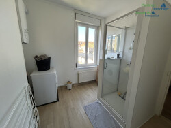 Comprenant : salon-séjour, cuisine aménagée et équipée (plaque, four, hotte), 2 chambres spacieuses, salle de bain neuve, WC indépendant et cellier.