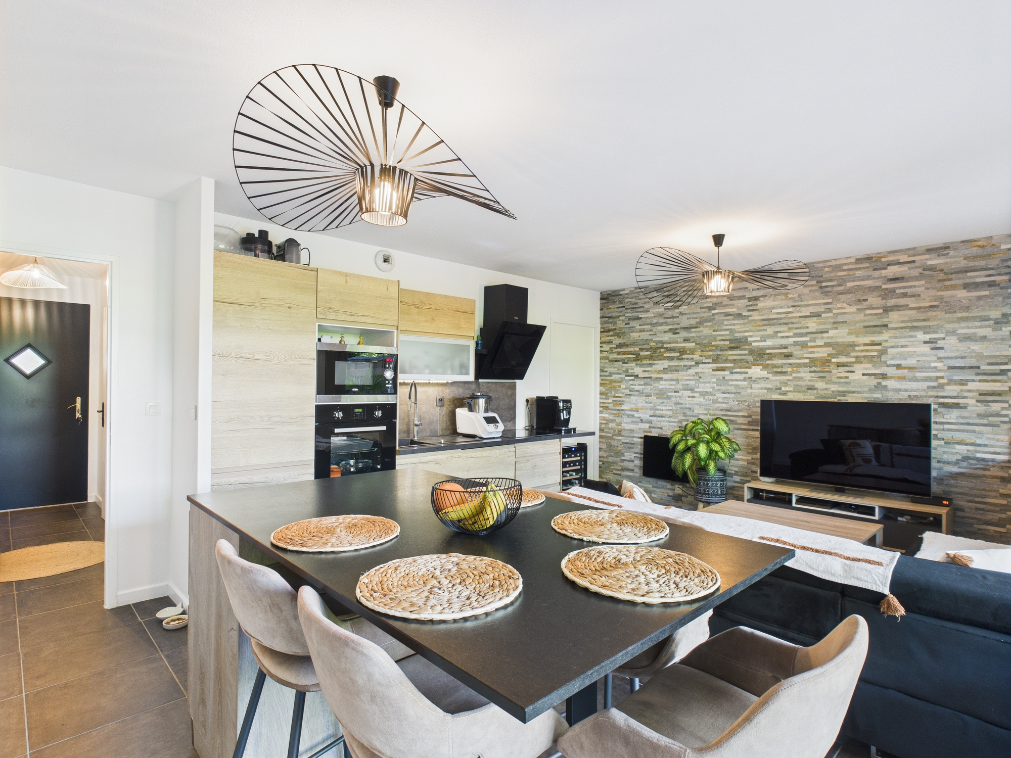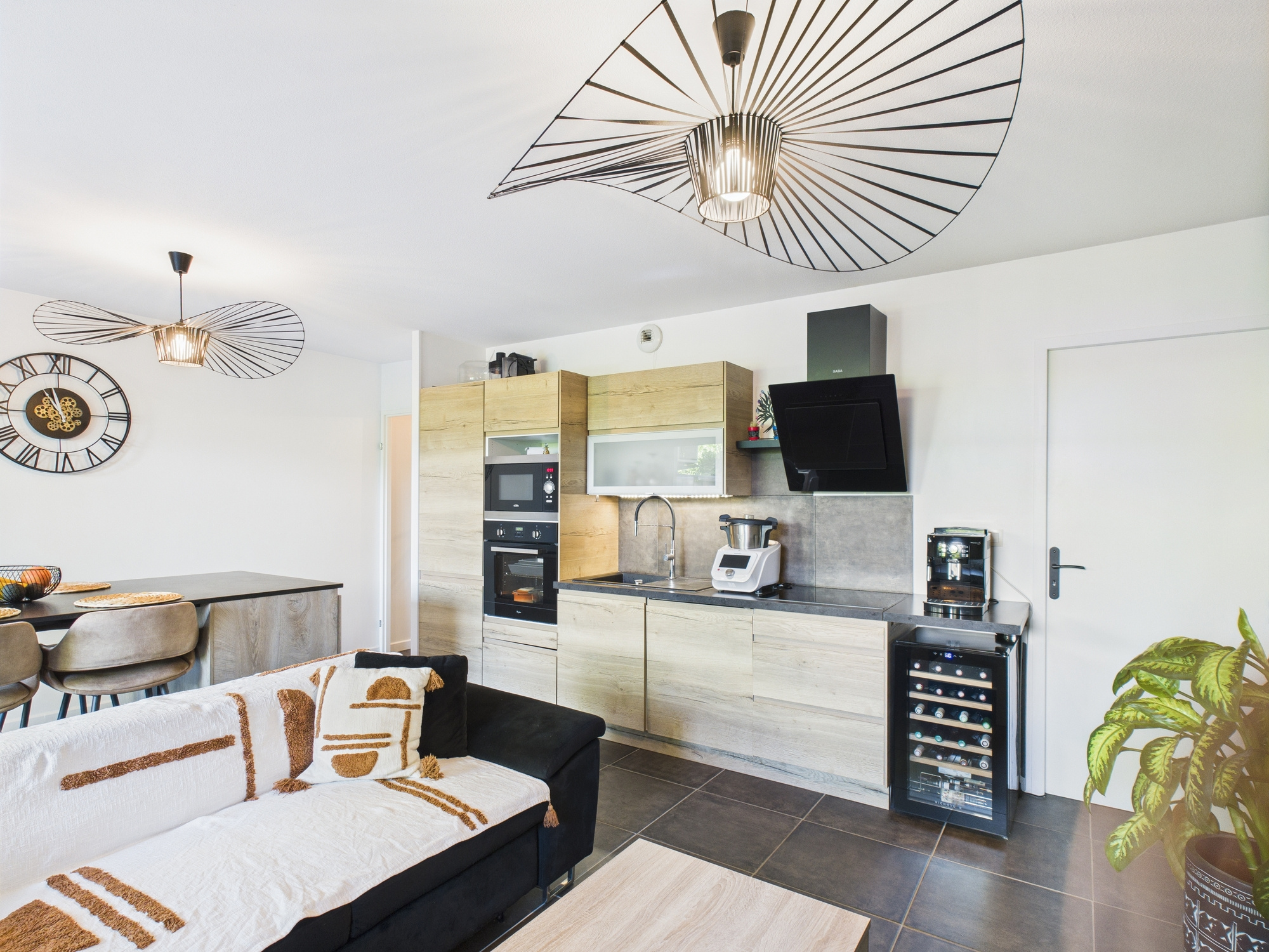 - d'une cuisine aménagée et équipée ouverte sur le séjour, parfaite pour partager des moments conviviaux,