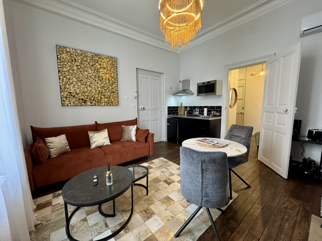 Appartement D meublé, situé au rez de chaussée d'un immeuble du Portail Louis comprenant une entrée sur séjour avec une cuisine aménagée et équipée (plaque de cuisson, hotte, four, micro-onde, lave-vaisselle, réfrigérateur) une chambre et une salle de bain. La WI-FI, l'eau, la taxe des ordures ménagères, le nettoyage des parties communes sont compris dans les charges. L'électricité reste à la charge du locataire. Les informations sur les risques auxquels ce bien est exposé sont disponibles sur le site Géorisques : www.georisques.gouv.fr