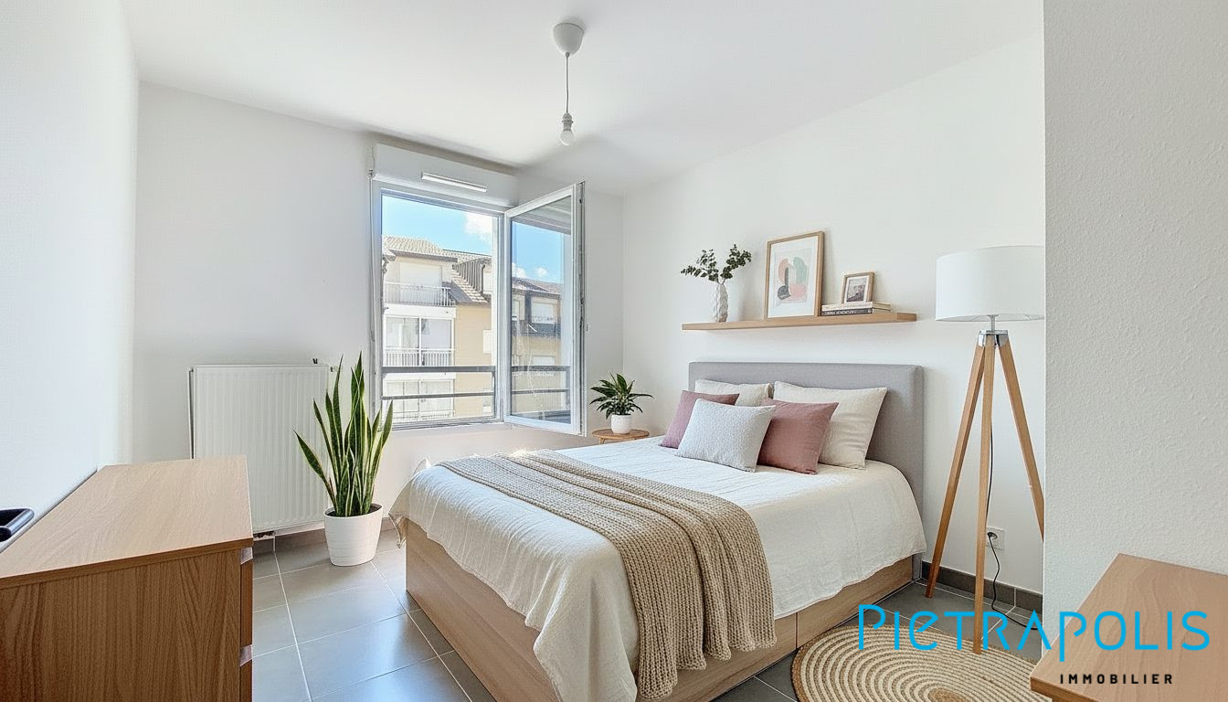 Situé au 1er étage, il comprend une entrée, un salon de 20m² accédant a une première Loggia, une cuisine équipée rénovée avec électroménager neuf et accès à la deuxième loggia, une grande chambre de 13m² avec placards, une salle de bain et un WC séparé.