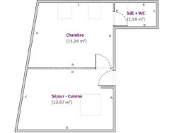 L'appartement se compose d'un séjour avec une cuisine ouverte, d'une grande chambre et d'une salle d'eau avec WC. Une place de parking privative vient compléter ce bien.