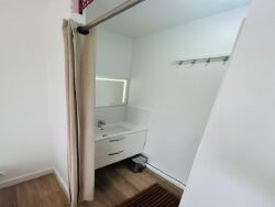 Il se compose d'une entrée fonctionnelle, d'un WC indépendant, d'une chambre cosy avec sa salle d'eau attenante, d'une cuisine américaine moderne entièrement équipée, et d'un séjour lumineux parfait pour se détendre.