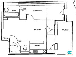 Au premier étage d'une résidence sécurisée, le bien comprend une entrée avec placard, un séjour avec cuisine ouverte donnant sur balcon, une chambre avec placard, ainsi qu'une salle de bain fonctionnelle et WC séparé.