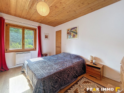 À l'est, une grande chambre en suite lumineuse, avec de nombreux rangements et une vue imprenable sur la chaîne du Mont-Blanc, dans un cadre naturel apaisant.