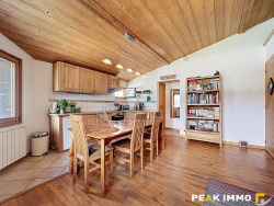 Vallée de Chamonix-Mont-Blanc, Les Houches, bel appartement de 2 pièces situé au dernier étage d'une petite copropriété avec peu de charges, en plein coeur du village. Traversant, baigné de lumière, il offre un spacieux séjour exposé ouest, avec cuisine ouverte, agrementé d'un espace cosy aménagé sous les combles -- parfait pour un couchage d'appoint ou du rangement discret.
