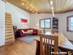 Vallée de Chamonix-Mont-Blanc, Les Houches, bel appartement de 2 pièces situé au dernier étage d'une petite copropriété avec peu de charges, en plein coeur du village. Traversant, baigné de lumière, il offre un spacieux séjour exposé ouest, avec cuisine ouverte, agrementé d'un espace cosy aménagé sous les combles -- parfait pour un couchage d'appoint ou du rangement discret.