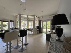 A SAINT-FRANÇOIS, Anse des Rochers, dans résidence sécurisée située dans un parc de 7 hectares avec plage, piscine, tennis et restaurant, BFG IMMOBILIER présente cet Appartement de plain-pied d'une surface de 50,14 m2 Loi Carrez (82,14 m2 au sol), composé de 2 pièces : entrée avec placard, séjour climatisé avec cuisine ouverte équipée, chambre climatisée avec placard, salle d'eau avec wc - Terrasse privative environ 80 m2 - Classe énergie : E. Appartement bénéficiant d'une citerne d'eau.Appartement vendu meublé et entièrement équipé. Les informations sur les risques auxquels ce bien est exposé sont disponibles sur le site Géorisques : www. georisques. gouv. fr