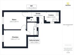 L'appartement, accessible depuis une coursive intérieure partagée avec un autre appartement, se compose comme suit :