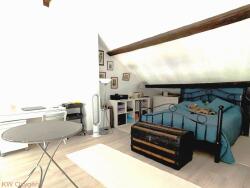 La chambre spacieuse de 22m² au sol (13m² loi Carrez), située en mezzanine, est inondée de lumière naturelle tout au long de la journée.
