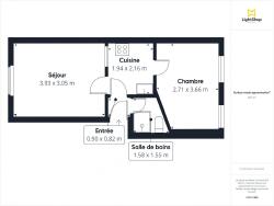 - Une salle d'eau avec douche, WC, vasque simple et VMC.