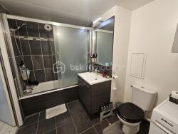 Il est situé au 3ème étage avec ascenseur et se compose d'une entrée avec visiophone et placard, une grande salle de bain avec WC, un salon lumineux avec sa belle cuisine équipée et aménagée ouverte donnant sur un balcon, une grande chambre. Une place de stationnement accompagne ce bien et un local à vélo est disponible