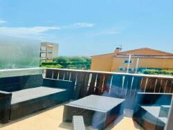 L'agencement de l'appartement a été étudié avec soin afin d'optimiser au mieux l'espace. Une entrée desservant la salle de douche équipée avec la machine à laver et un sèche serviette et le WC, puis la pièce de vie avec cuisine américaine aménagée et équipée neuve ouvrant sur une terrasse de 12 m2 avec une vue mer, puis la chambre avec elle aussi un accès direct à la terrasse. Cet appartement est vendu meublé.