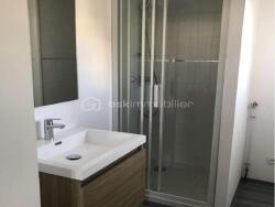 La chambre, spacieuse (16,60 m²), dispose d'un grand placard et donne accès à une salle d'eau fonctionnelle avec emplacement pour une machine à laver (largeur 45 cm). Un WC séparé avec lave-mains complète l'agencement.