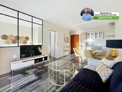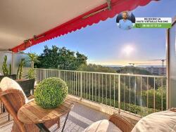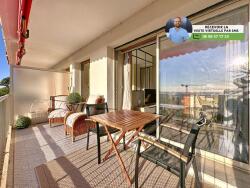 (Visite virtuelle 360o disponible sur demande par sms 7j/7) Sébastien Vidal de chez Phygital immo l'agence au forfait fixe vous présente en Exclusivité ce superbe appartement 2 pièces de 34.42m2 loi Carrez, entièrement rénové en 2020, avec une vaste terrasse de 10.83m2 exposée Est. Très belle vue mer. Situé au 1er étage sur 4 d'une résidence avec gardien, piscine et espaces verts, il se trouve au calme dans le quartier recherché de La Pagane, à proximité du centre-ville d'Antibes, des transports en commun et des espaces de loisirs (Anthea, stade nautique, tennis, etc.).