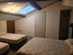 À l'étage : une chambre mansardée pleine de charme, proposant 4 couchages avec sa salle d'eau privative avec douche et lavabo.
