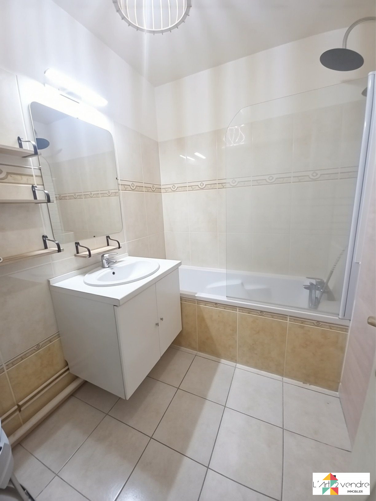 Il se compose d'une entrée ouverte sur salon, d'une cuisine équipée, de 2 chambres, d'une salle d'eau et d'un WC. Comble pour le rangement au-dessus.