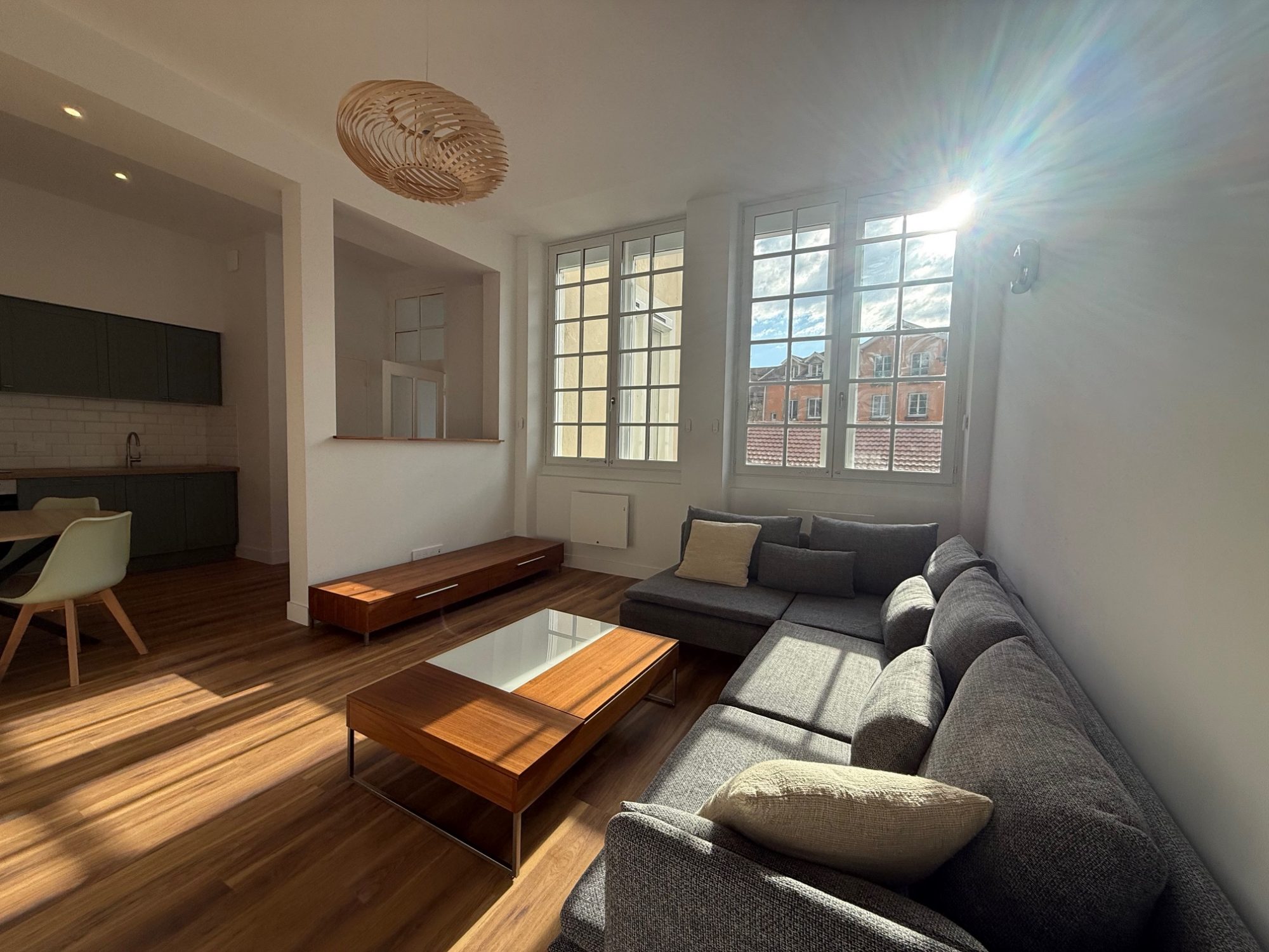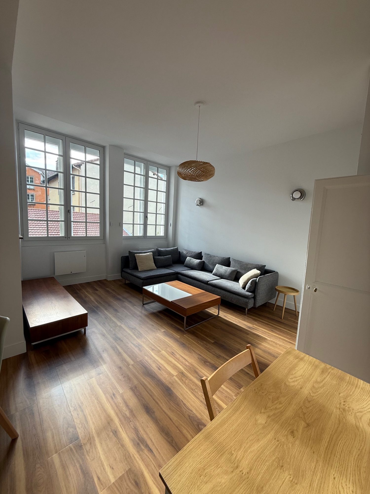 9 Quai Créqui GRENOBLE HYPER CENTRE - Appartement 3 pièces, 57m² en rez-de-chaussée surélevé - Copropriété sécurisée, idéalement située sur les quais, face à la Bastille - Récemment rénové, sécurisé par des barreaux et une porte d'entrée serrure 3 points - Cuisine équipée avec emplacement machine à laver, plaque de cuisson, hotte, emplacement pour le four, nombreux rangemetns, ouverte sur séjour - Deux chambres spacieuses et belle hauteur sous plafond - Les charges comprennent l'eau froide, l'eau chaude et le chauffage au gaz collectif - Paiement mensuel avec régularisation annuelle - Une cave sur le palier vient compléter ce bien