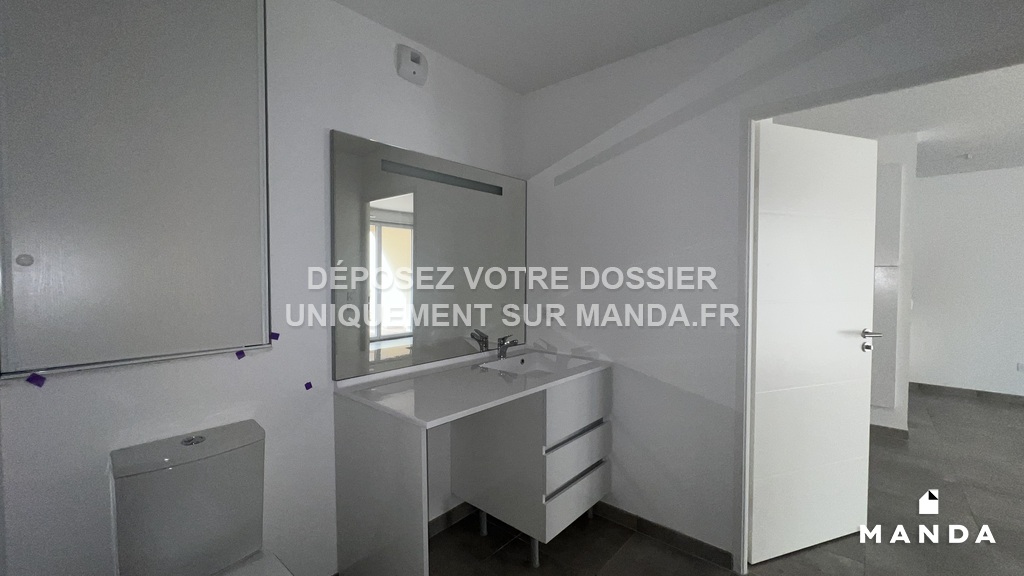 Il se compose d'une entrée avec placard, d'une cuisine ouverte et équipée (plaque vitrocéramique, hotte, meubles de rangement), d'un séjour lumineux donnant accès à une grande terrasse, de deux chambres avec placard aménagé, une salle bain et un wc séparé