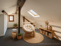 Deux chambres complètent l'espace nuit, ainsi qu'une salle de bains et des toilettes séparées. Une cave vient compléter le tout.