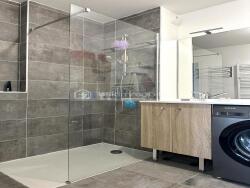 Détail des prestations : une entrée avec placards, une pièce à vivre de 28m2 avec cuisine moderne aménagée et équipée, accès terrasse bois (avec éclairage, prise et arrivée d'eau), deux chambres dont une avec dressing et la seconde avec placards, une salle d'eau avec douche à l'italienne, dégagements, wc séparé,...