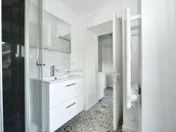 Très lumineux, situation calme. Le bien dispose d'une cuisine séparée et équipée récente. 2 chambres individuelles Espace lavabo, douche et wc avec sèche serviettes.