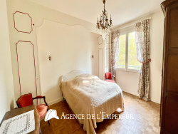 L'Agence de l'Empereur vous présente ce bel appartement traversant de 75,79 m2, situé au 1er étage avec ascenseur, au coeur d'une résidence calme, sécurisée, avec gardien et espaces verts soigneusement entretenus. L'entrée, équipée de rangements, mène à un vaste séjour lumineux, agrémenté d'une belle cheminée fonctionnelle qui apporte charme et convivialité à la pièce. Le séjour s'ouvre sur un balcon sans vis-à-vis offrant une vue verdoyante. La cuisine, indépendante et dinatoire, dispose d'un cellier attenant. L'espace nuit se compose de deux grandes chambres confortables, d'environ 15 m2 et 13 m2, dont l'une avec un cabinet de toilette privatif. Une salle de bains, des toilettes séparées ainsi que de nombreux rangements complètent l'ensemble. Quelques travaux de rafraîchissement sont à prévoir, offrant l'opportunité de personnaliser ce bien selon vos envies. Les charges mensuelles s'élèvent à environ 300 EUR, et la taxe foncière à 1 181 EUR. L'appartement est vendu avec une cave et bénéficie de deux emplacements de stationnement. Un cadre de vie paisible, à proximité des commodités, une belle opportunité à découvrir sans tarder ! Vidéo 4K : https://www.youtube.com/watch?v=ktEKPE96G8o Les informations sur les risques auxquels ce bien est exposé sont disponibles sur le site Géorisques : www.georisques.gouv.fr