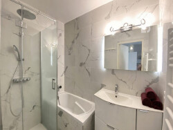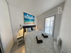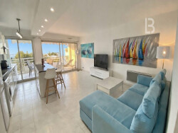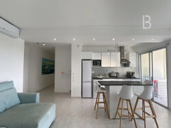 Superbe appartement 3 pièces traversant d'environ 71 m², entièrement rénové avec goût, situé au 4ème étage d'une résidence sécurisée et recherchée à Antibes. Baigné de lumière grâce à ses grandes baies vitrées, il offre une agréable pièce de vie avec cuisine américaine moderne, entièrement équipée, ouverte sur un spacieux séjour. L'ensemble se prolonge par une magnifique terrasse, idéale pour profiter d'une vue imprenable sur la mer, la piscine de la résidence et le Parc Exflora. L'espace nuit se compose de deux chambres confortables, toutes équipées de climatisation, ainsi qu'une salle de bains avec baignoire et douche, et des rangements optimisés. Les prestations sont de qualité : climatisation dans toutes les pièces, finitions soignées, accès direct à la piscine, double garage fermé et cave privative. Commerces et restaurants accessibles à pied, à proximité immédiate des plages et de toutes les commodités, dans un environnement calme et privilégié. Un bien rare, alliant confort, luminosité et emplacement d'exception.