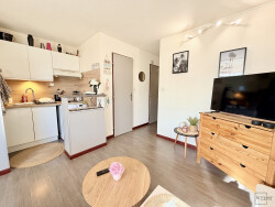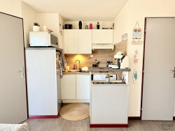 Fütterer Property vous présente à Narbonne-Plage EN EXCLUSIVITÉ : Appartement 3 pièces cabine, situé au 1er étage d'un petit immeuble, au sein d'une résidence idéalement placée à seulement 100 mètres de la plage et des commerces (rue des étoiles). Le bien se compose d'une entrée, d'un séjour avec cuisine équipée, d'une salle d'eau, d'un WC séparé, ainsi que de deux chambres cabine. L'appartement est vendu meublé et entièrement équipé. Prestations : Double vitrage, volets roulants électriques, parking privé, appartement meublé et équipé, emplacement privilégié à proximité immédiate de la plage et des commodités, quartier calme. *Le logement est actuellement loué en meublé pour un montant de 510/ mois cc (date d'entrée dans le logement 24.04.2024).