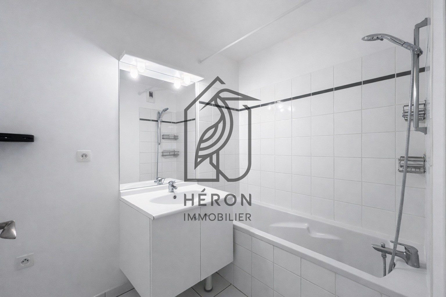 Une salle de bain avec arrivées machine à laver