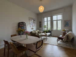 PRESTATION DE HAUT STANDING ! A deux pas de la gare, dans un immeuble de caractère au 4ème étage, vous découvrirez ce 3 pièces d'exception entièrement meublé avec goût comprenant une entrée, cuisine séparée et entièrement équipée avec accès au 1er balcon donnant sur cour arrière, séjour avec accès au second balcon donnant sur l'avant, deux chambres dont une grande avec placards intégrés, salle d'eau avec douche à l'italienne et W-C., en sous-sol une cave. Materiaux de qualité, coup de coeur assuré. LIBRE LE 01/04/2026 : 03 87 56 40 85