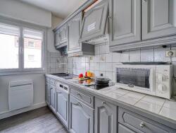 La cuisine aménagée et équipée, dotée d'une baie vitrée de type atelier d'artiste, apporte perspective et convivialité.