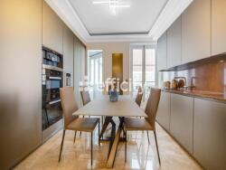 efficity, l'agence qui estime votre bien en ligne, vous ouvre les portes de ce splendide Double appartement de 6 pièces, situé dans l'un des quartiers les plus prisés de Paris situé dans le Triangle d'Or, au 4e et dernier étage d'un immeuble de caractère datant d'avant 1953. Cet ensemble immobilier exceptionnel de 189 m² prend l'intégralité de l'étage, offrant ainsi une totale intimité et une vue dégagée. Ce sont deux appartements distincts, mais vendus ensemble, et occupant l'ensemble du 4e étage. Entièrement rénové par une décoratrice d'intérieur et un architecte prestigieux, chaque détail a été minutieusement conçu pour offrir une expérience de vie hors du commun. Les matériaux choisis, notamment le marbre de Carrare qui habille l'ensemble des sols, apportent une touche haut de gamme. En excellent état et bordé d'un grand balcon, cet appartement se trouve au 4e étage d'un immeuble haussmannien de grand standing avec gardien. Il comprend une entrée avec un volume spectaculaire, un élégant salon idéal pour recevoir, complète l'espace de réception, une grande cuisine dînatoire entièrement équipée côté cour, quatres suites parentales avec dressing et salle de bains, dont deux donnant sur balcon, une salle de douche, une buanderie ainsi que 5 WC au total.