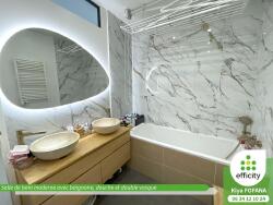 ?Une salle de bain moderne avec baignoire, douche et double vasque