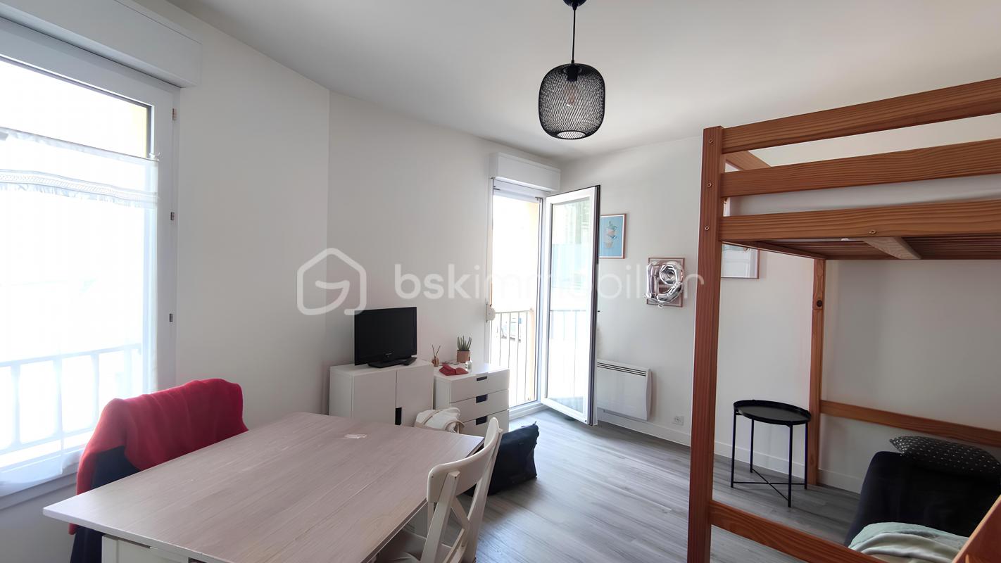 Entrée séparée, salle de douche avec WC, la pièce principale, avec un coin cuisine, baignée de lumière naturelle, s'ouvre sur un balcon offrant une vue dégagée.