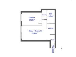 L'appartement d'une superficie carrez de 46,51m² se compose d'une entrée, d'un vaste séjour avec cuisine ouverte de près de 25m², d'une chambre, d'une salle de bain avec wc et d'un dressing.