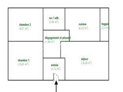 Il se compose d'une entrée, d'un séjour lumineux, de 2 chambres , d'une cuisine équipée avec loggia fermée, d'une salle d'eau avec wc. Double vitrage et volets électriques dans les chambres.