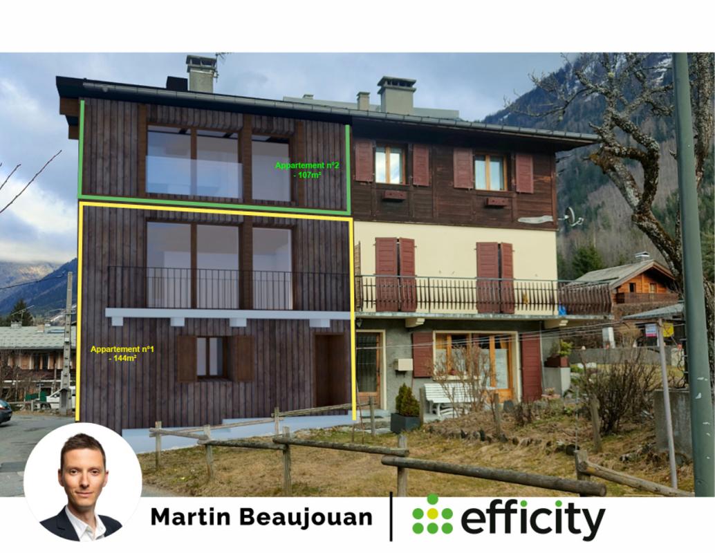 Efficity, l'agence qui estime votre bien en ligne, et Martin BEAUJOUAN vous proposent ce superbe appartement en duplex, réparti entre le rez-de-chaussée et le premier étage, aux volumes généreux, dans un cadre authentique à quelques minutes du centre de Chamonix.
