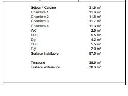 Fiche Id-UBW179227 : Vitry sur seine, T5 5p 97m? terrasse 38m? vue paris 1pk d'environ 97 m2 comprenant 5 piece(s) dont 4 chambre(s) + Terrasse de 38 m2 - Vue : Vue d?gag?e sur paris - Construction R?sidence standing - Equipements annexes : jardin - terrasse - parking - digicode - double vitrage - ascenseur - - chauffage : Gaz Collectif Livraison 3T 2028 - Prix pr?f?rentiel pour habitants et travailleurs de Vitry - Classe Energie A : 8 kWh.m2.an - (DPE ancienne version) - Plus d'informations disponibles sur demande... - Mentions légales : Proposé à la vente à 438000 Euros (honoraires à la charge du vendeur) - Classe Energie A : 8 kWh.m2.an - (DPE ancienne version) - Bien en copropriété - Charges annuelles : 3500 Euros/an (soit 292 Euros/mois) - Affaire suivie par Mr Maximilien ZANIER (Agent immobilier - Responsable) - Reseau Immo-Diffusion Bagnolet - Pour plus d'informations, contactez notre secrétariat au 09 74 53 13 81 (Appel gratuit ou prix d'une communication locale)