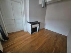 Deux belles et grandes chambres, parquet au sol et cheminées décoratives. Salle de bains, baignoire, vasque et toilettes.