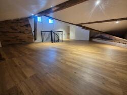 Un escalier donne en duplex sur une très grande mezzanine pouvant servir de bureau / salle de jeux / bibliothèque. A l'étage, jolie suite avec grande chambre et salle d'eau privative avec toilettes, douche et lavabo. Briques apparentes et climatisation réversible.