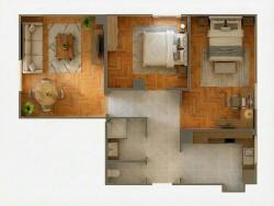 L'appartement se compose d'un séjour de 13,6 m², de deux chambres de 9,2 m² et 12,6 m², d'une cuisine fonctionnelle, d'une salle d'eau, d'un WC séparé et d'une cave. Il permet un emménagement immédiat, tout en offrant un réel potentiel de modernisation.