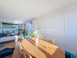 Niché au 5ème étage d'un immeuble entretenu avec ascenseur et gardien, cet appartement de 70m² entièrement rénové par un architecte d'intérieur offre une vue dégagée plein SUD et un environnement calme. Il se compose d'une entrée avec placard de rangement, d'un spacieux séjour-salle à manger d'environ 40m² offrant une belle luminosité naturelle, d'une cuisine équipée et aménagée, de deux chambres confortables dont une avec vraie pièce dressing, d'une salle d'eau avec double vasque, WC séparés et coin arrière cuisine intégrant le réfrigérateur.