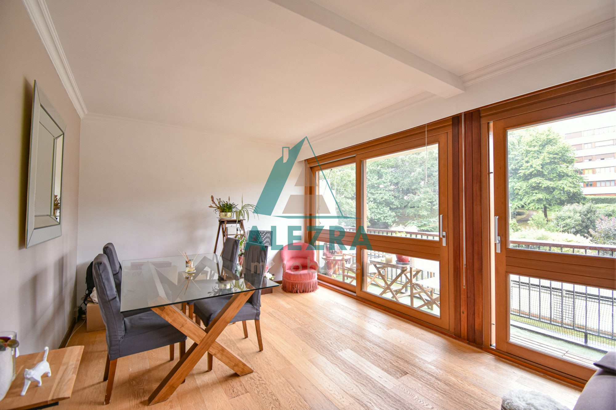 Situé à l'arrière de la résidence, au calme et dans la verdure, appartement familial de 87,63m2 en PARFAIT état. Il se compose d'une entrée donnant sur un séjour double avec balcon, une cuisine aménagée ouverte, trois chambres sans aucun vis à vis, une grande salle de bains avec une baignoire balnéo, une salle de douches / buanderie. Une cave dans le même bâtiment. Au pied de l'immeuble, un garage fermé en option du prix.