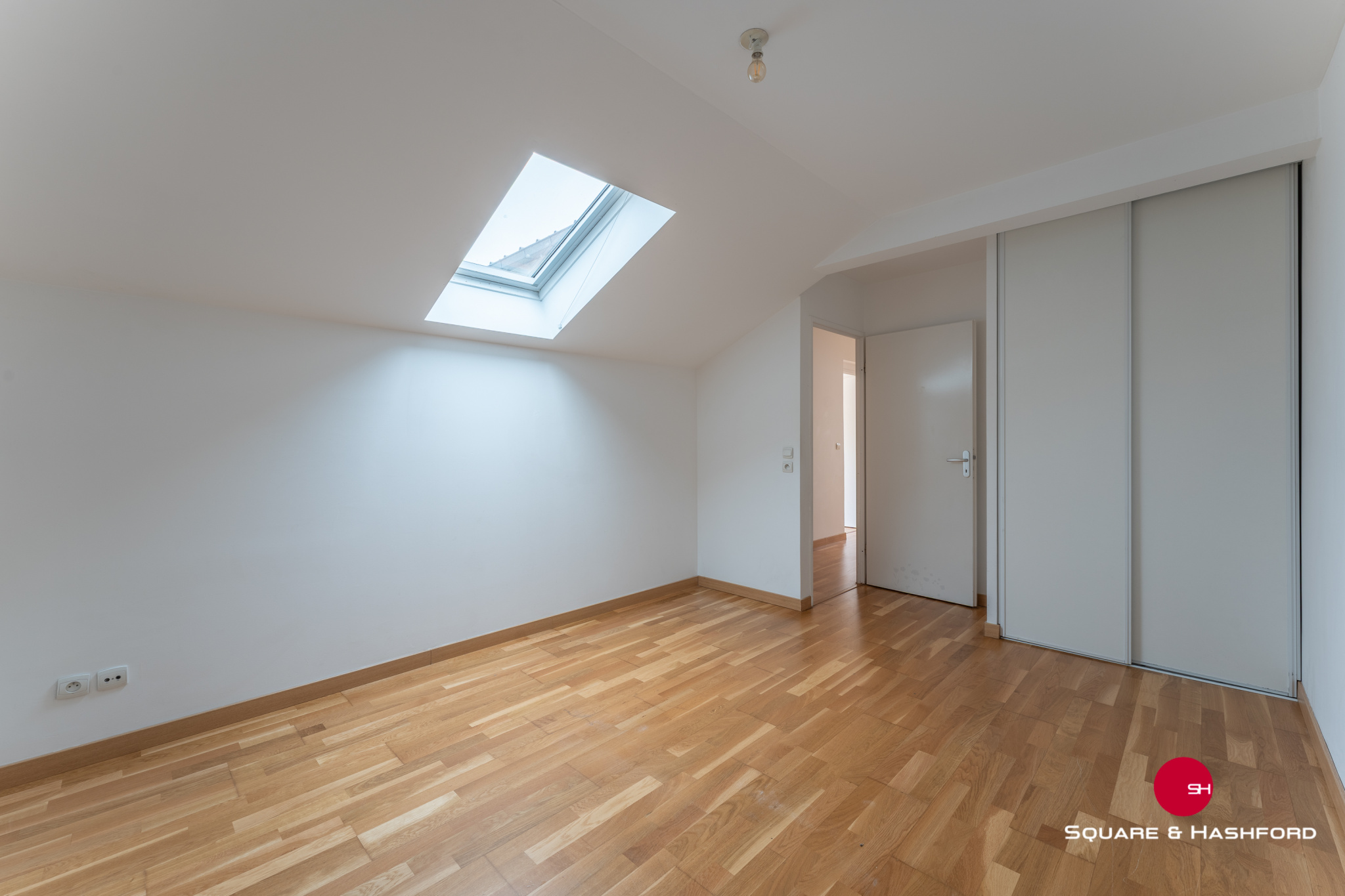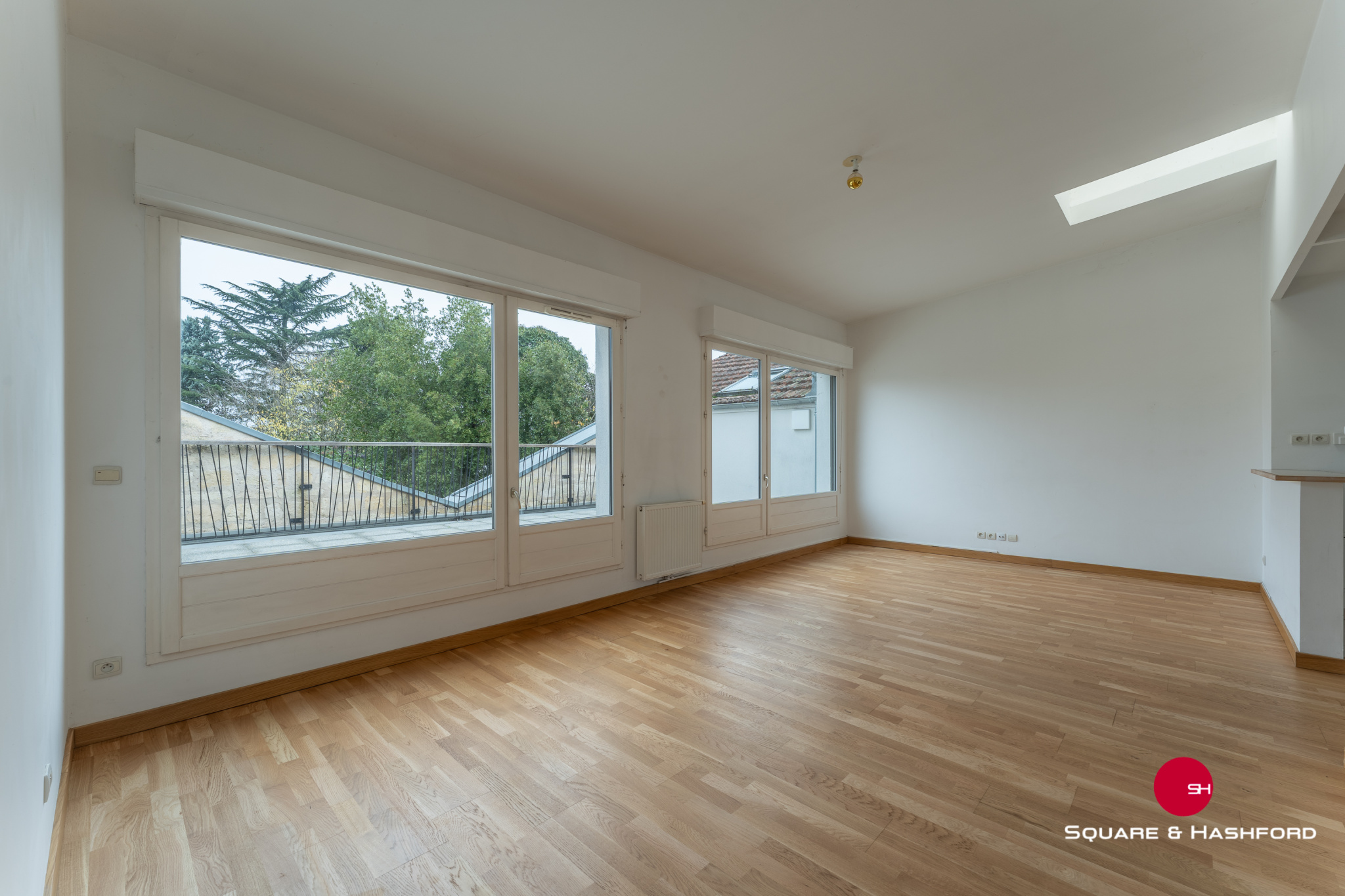 Passée l'entrée en rez-de-chaussée, un escalier privatif mène à l'appartement. Celui-ci se compose de : - Un beau séjour / cuisine avec environ 4m de hauteur sous plafond - Une grande terrasse de 25m² aux proportions et exposition idéales au Sud/Ouest - Deux petites chambres avec placards - Un grand palier faisant actuellement office d'espace d'accueil avec rangements peut notamment être utilisé en bureau - Une salle de bain - Un WC indépendants