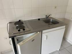 Dans une agréable résidence, un appartement situé au rez-de-chaussée comprenant une entrée avec placard, un séjour, un coin cuisine ( plaque électrique et un petit frigidaire ), une chambre avec placard, une salle d'eau et un WC. Cet appartement dispose également d'une terrasse et d'une place de parking.