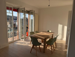 Appartement 5 pièces de standing à Mulhouse situé au 1er étage d'une maison bourgeoise rue de la Sinne à MULHOUSE. Salon et séjour en enfilade des plus lumineux environ 3 chambres spacieuses et lumineuses. Cuisine équipée séparée (plaque vitrocéramique, hotte ,four électrique et lave vaisselle) ouverte sur la pièce de vie. Salle-de-bains avec baignoire d'angle et double vasque. WC séparé avec lave-mains. Cellier. Chauffage collectif au gaz. Cave. Un appartement intimiste aux beaux volumes à 5 minutes de la gare et à 2 minutes de l'école Jeanne d'Arc. Contactez Pascale MICHEL, agent commercial au 0603837945 ou pmichel@imbs-immo.com