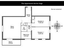 Le bien, situé au deuxième et dernier étage se compose d'une grande entrée avec placard, d'un séjour lumineux avec cuisine aménagée et équipée et accès à un grand balcon exposé sud, deux chambres dont une avec placard, d'une salle d'eau et d'un WC séparé. L'appartement comprend également 2 places de parking en sous-sol fermées par une double porte de garage automatique.