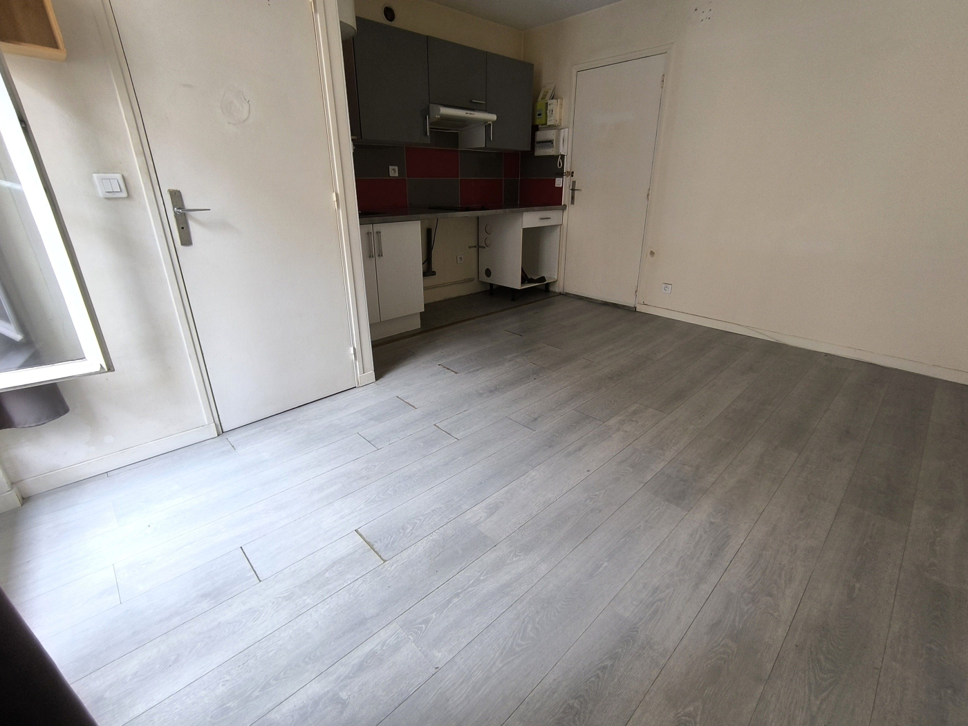 Escalier B, sur cour, au 5e étage : entrée, salon, chambre, cuisine, salle d'eau avec, wc. Travaux à prévoir.