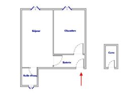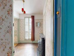 Escalier B, sur cour, au 5e étage : entrée, salon, chambre, cuisine, salle d'eau avec wc et fenêtre. Travaux à prévoir.